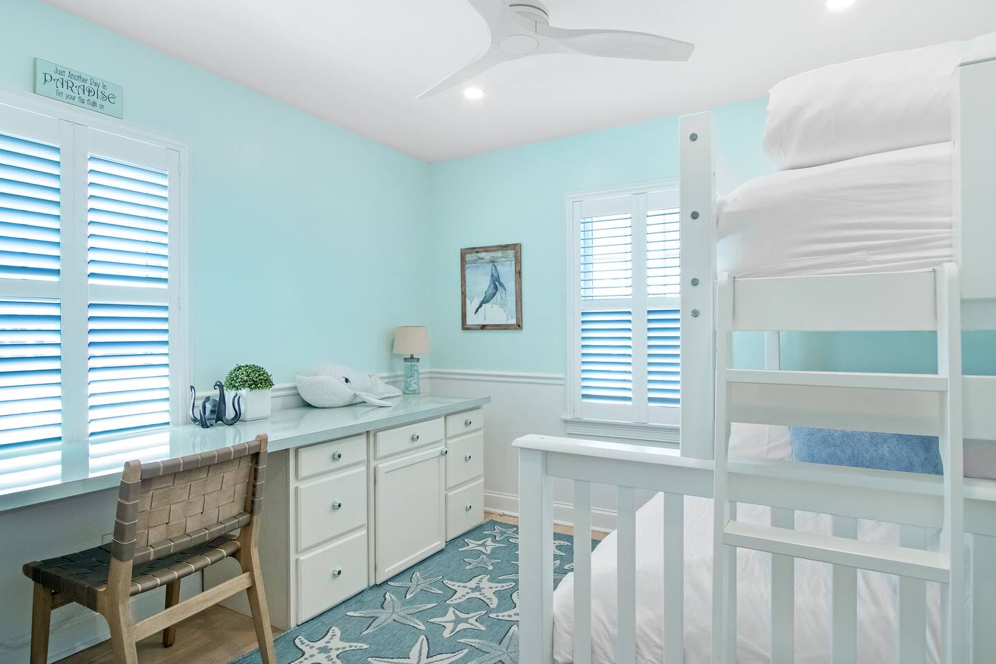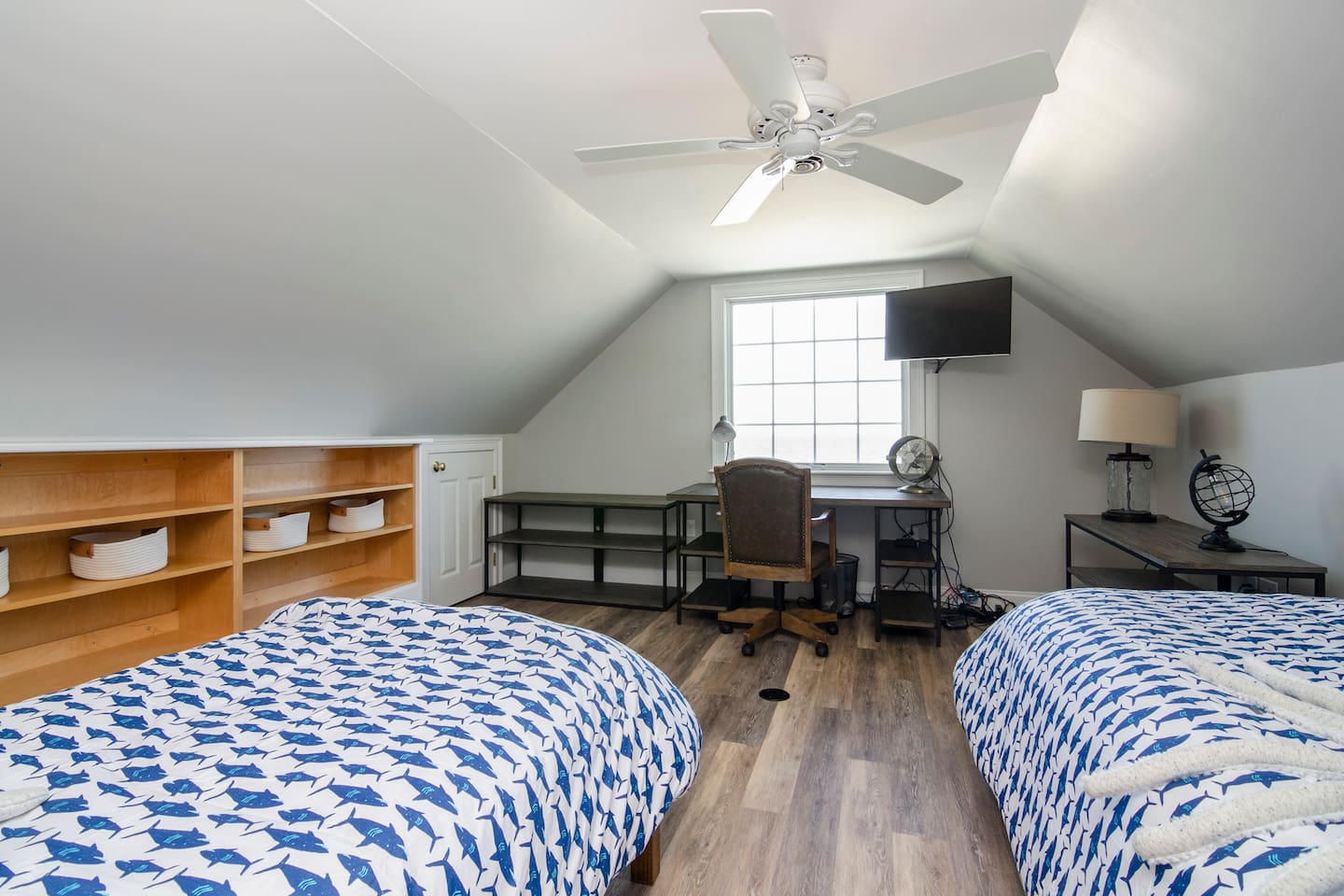 The entire home is yours to enjoy. Two things to note: 1. There's a locked closet on the third floor that is inaccessible as we keep our supplies in there. 2. The 3rd floor bedroom (two twin beds) is accessible through the second floor guest bedroom (King bed with golden cod over it).